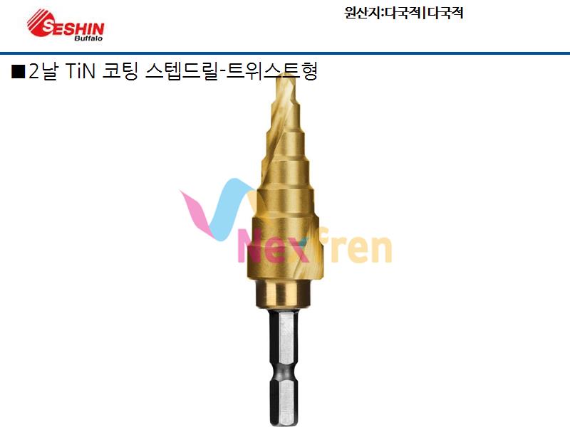 세신버팔로 2날 TiN 코팅 스텝드릴-트위스트형 T7-416(HEX, TiN) 4 - 16mm