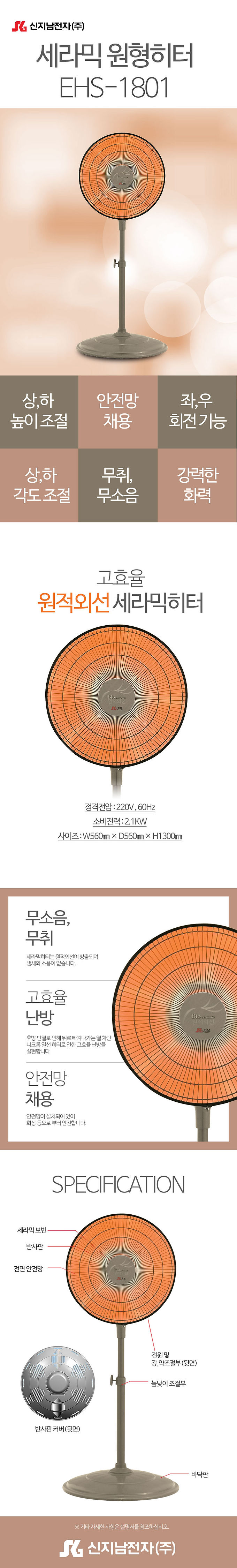 신지남 공업용 세라믹히터 EHS-1801 2,100W