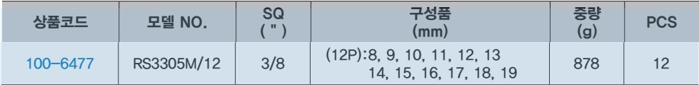 | P100-6477 | RS3305M/12 | 3/8SQ | 12각 | 878g | 12pcs | 1SET |