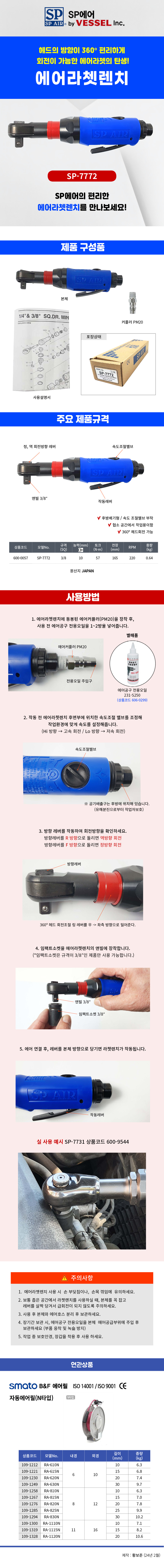 SP 회전형 에어라쳇렌치 (단종)SP 7772 3/8SQ 에어 공구 임팩